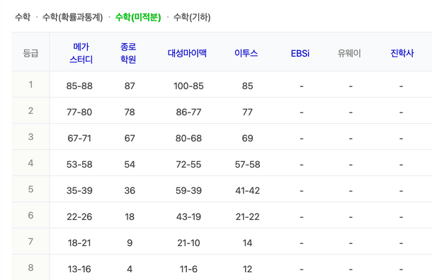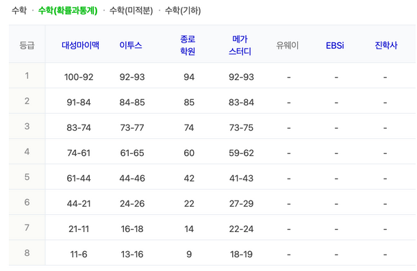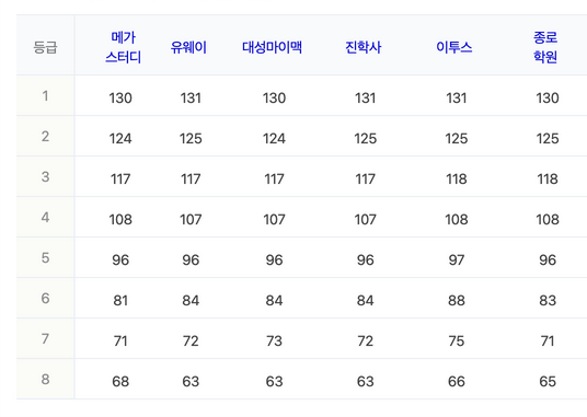 영어 과목에서는 1등급 비율이 전년도보다 증가했습니다. 원점수 기준 90점 이상을 받은 수험생이 많아, 상위권 경쟁이 더욱 치열해질 것으로 보입니다.